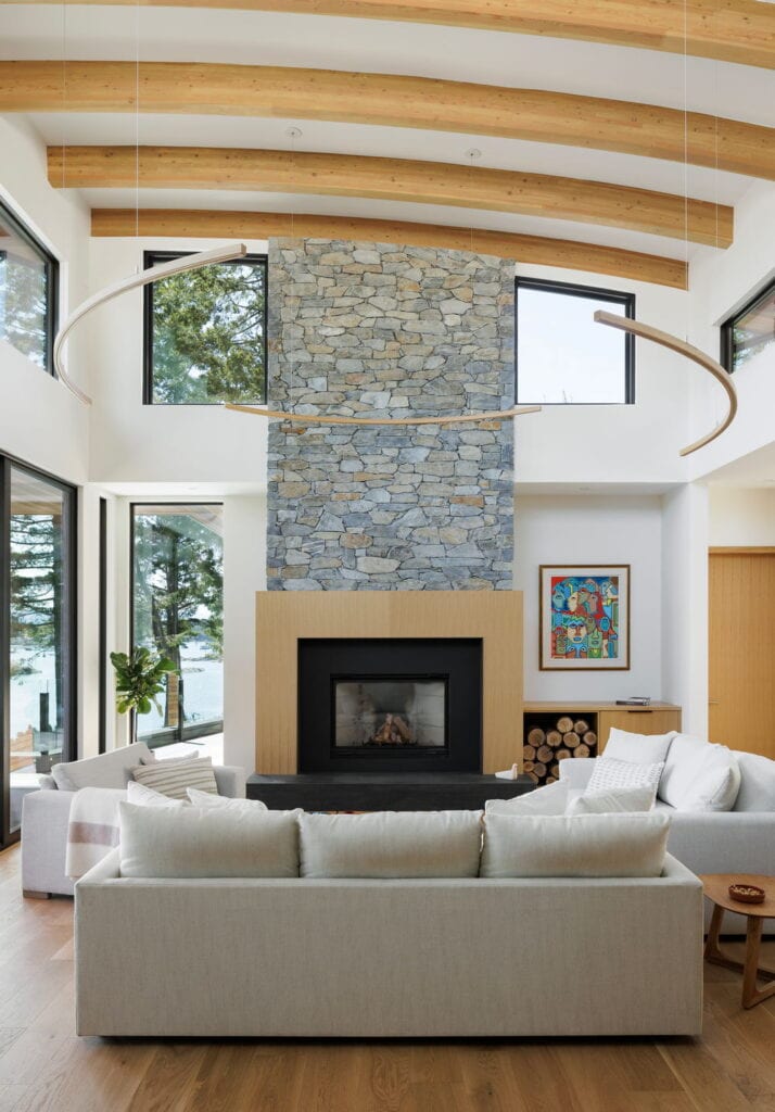 On deciding to start from scratch, they tried different configurations of the home, but in the end it was clear that the original footprint made the most of the lot. (As Fallows says: “The old house filled the lot, this one fills the lot.”) The new design maintained a similar floor plan, adding a single bedroom on the main floor that extended along the angle of the shoreline.