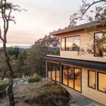 The home is, in effect, bolted to the edge of a rock face. Its highest level hangs 25 feet over the lake, while its lower level is buried back deep into bedrock, judiciously blasted out while navigating restrictive environmental and seismic codes. The build was so complex the team had to work in reverse to complete the structure, starting with the landscaping and building backwards.